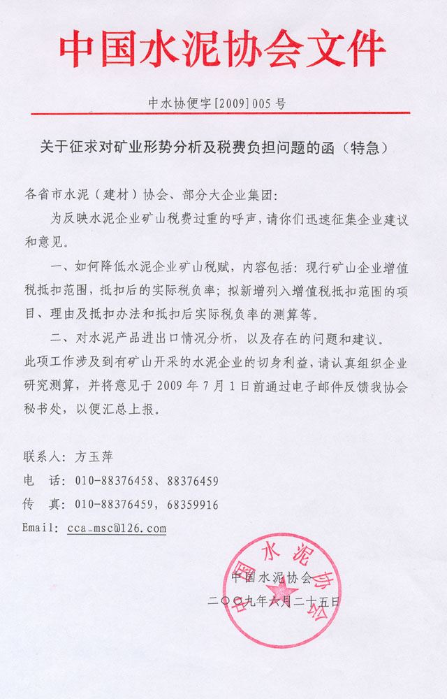 關(guān)于征求對(duì)礦山形勢(shì)分析及稅費(fèi)負(fù)擔(dān)問(wèn)題的函(特急)
