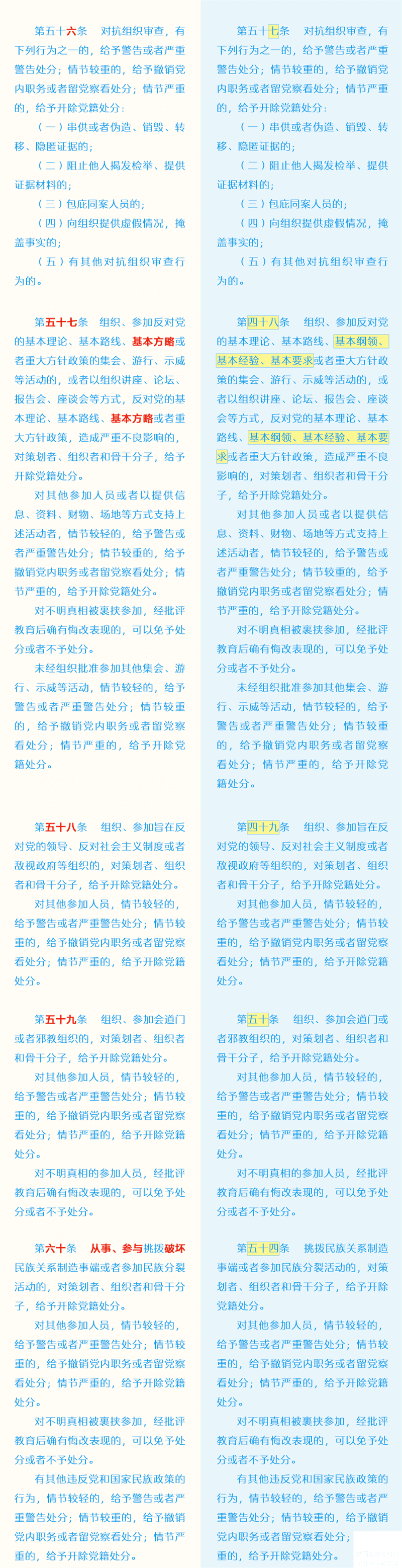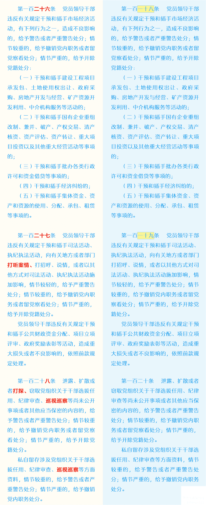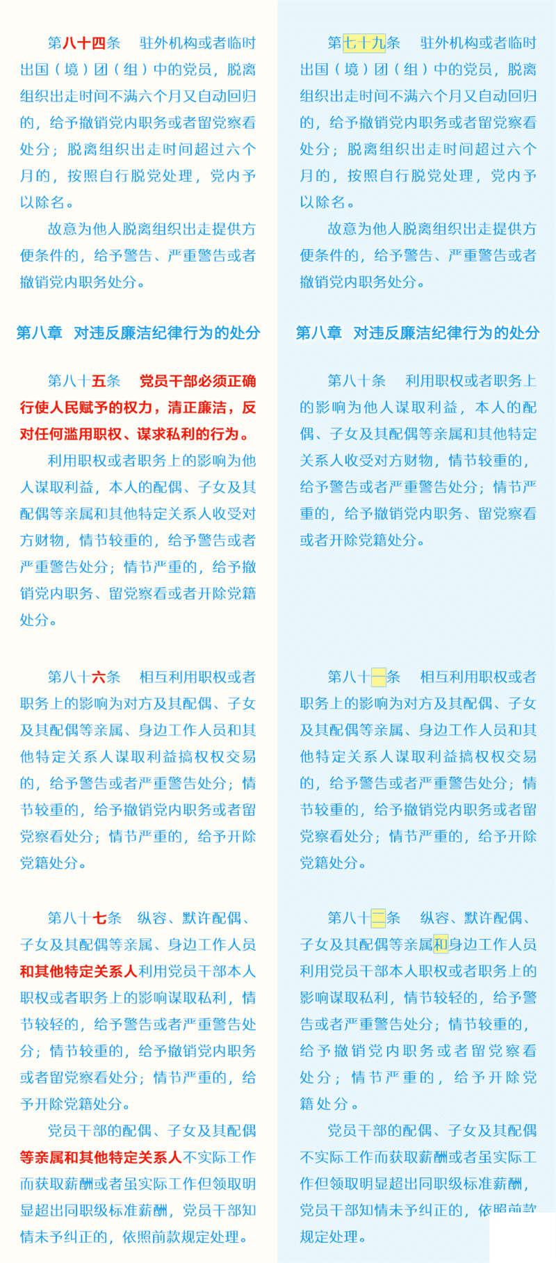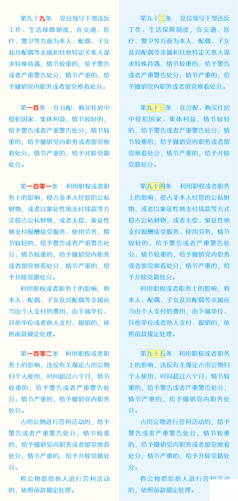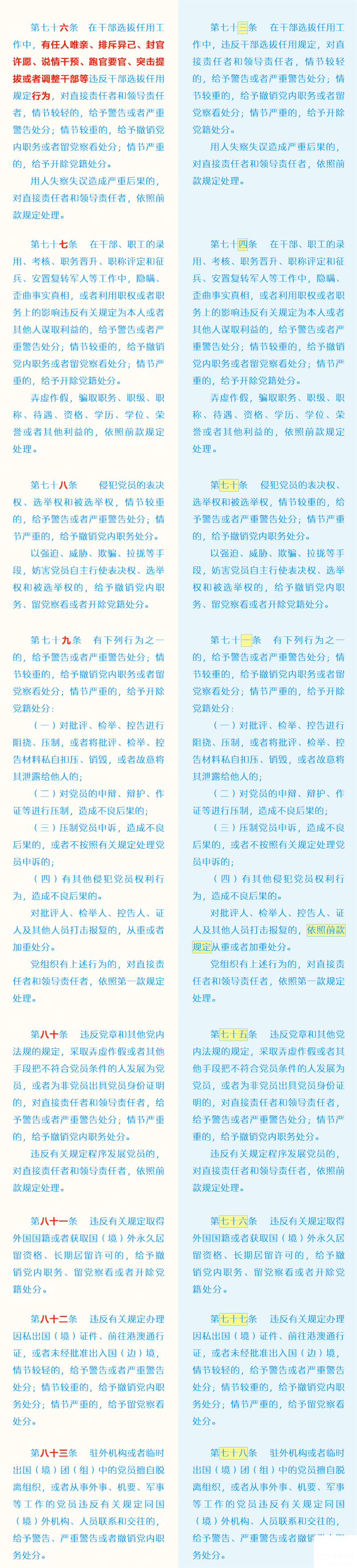 新舊《中國(guó)共產(chǎn)黨紀(jì)律處分條例》對(duì)比