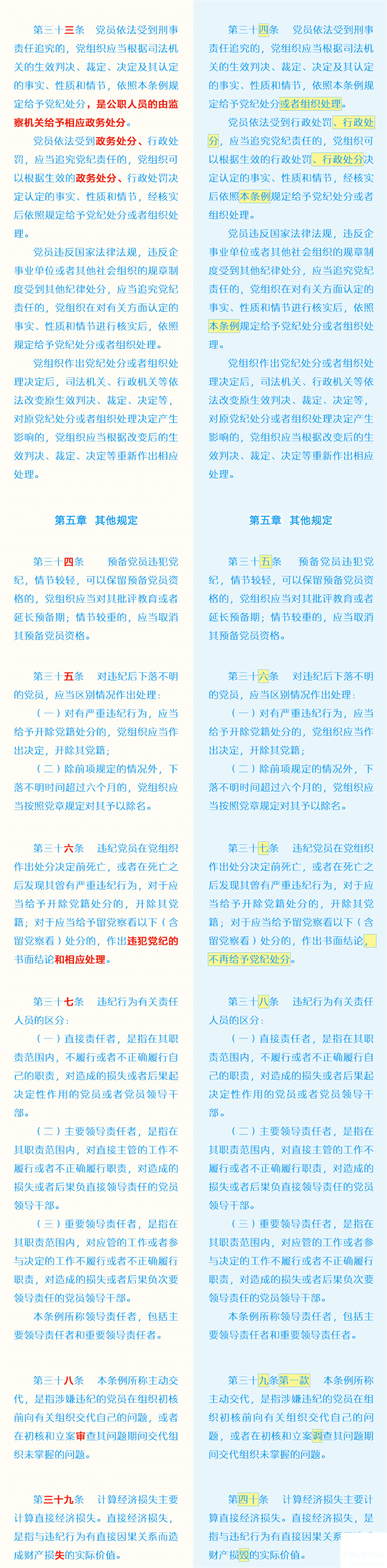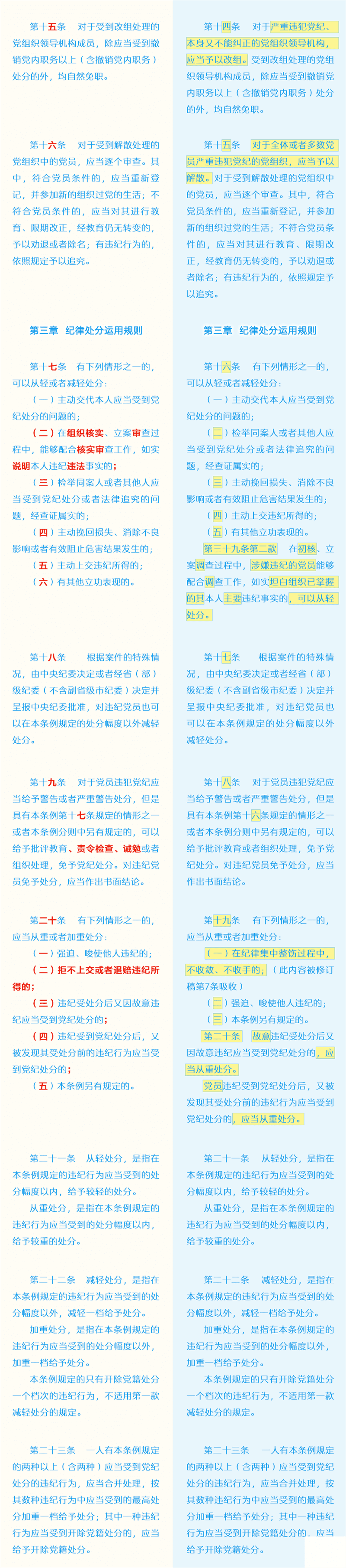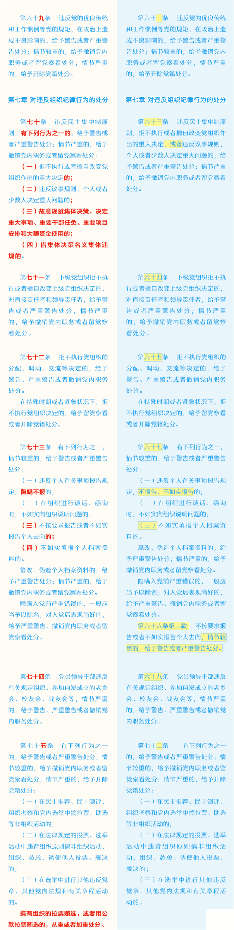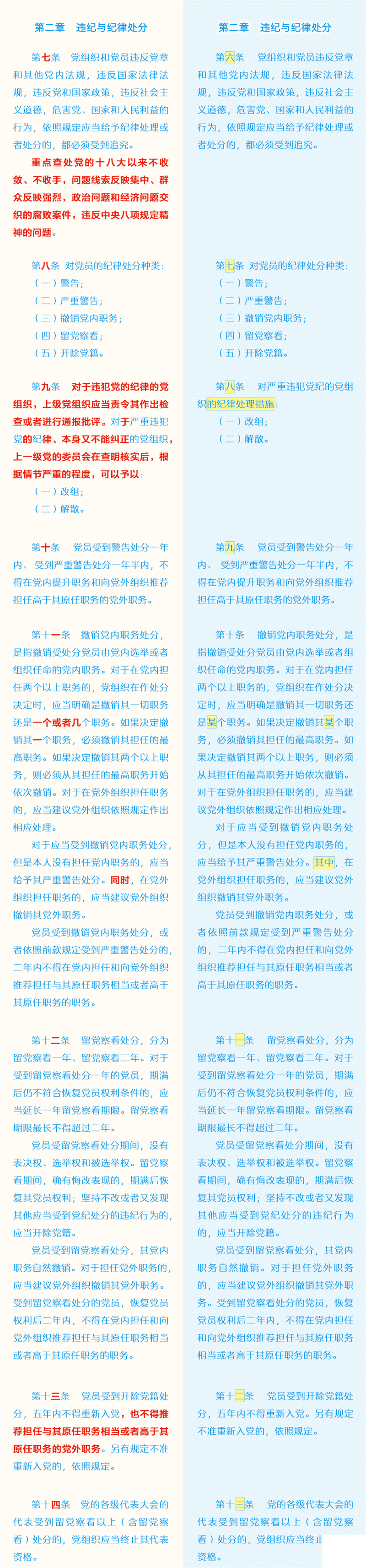 新舊《中國(guó)共產(chǎn)黨紀(jì)律處分條例》對(duì)比