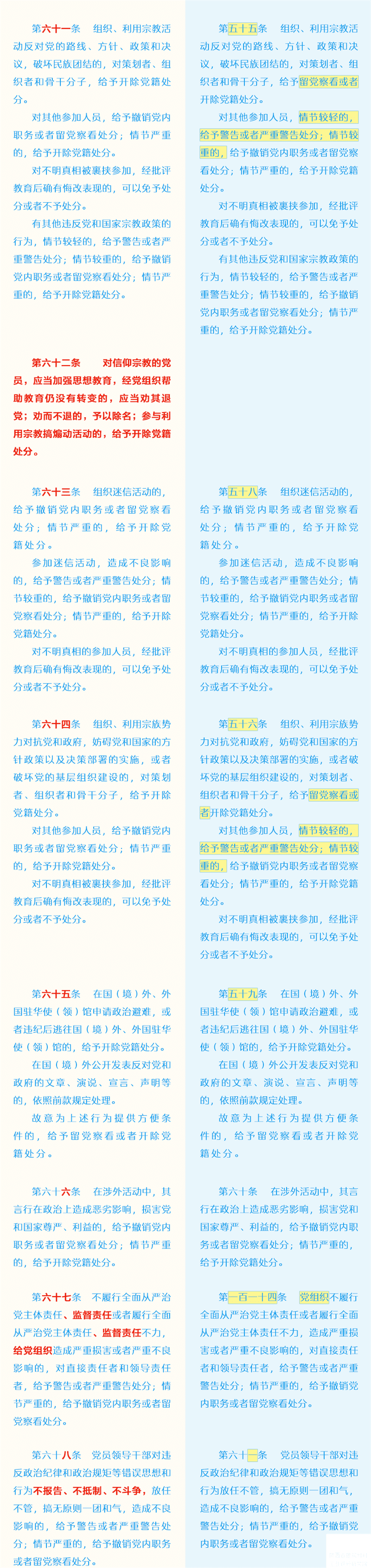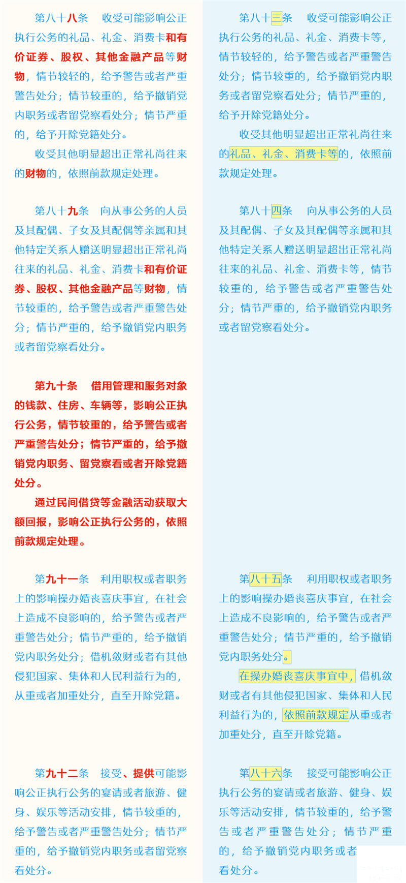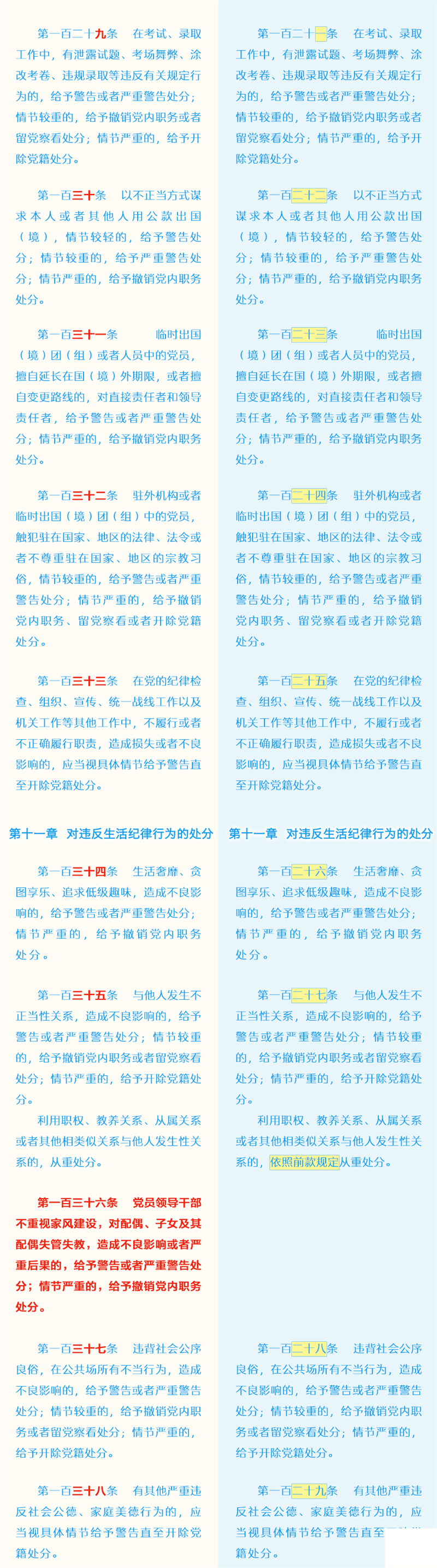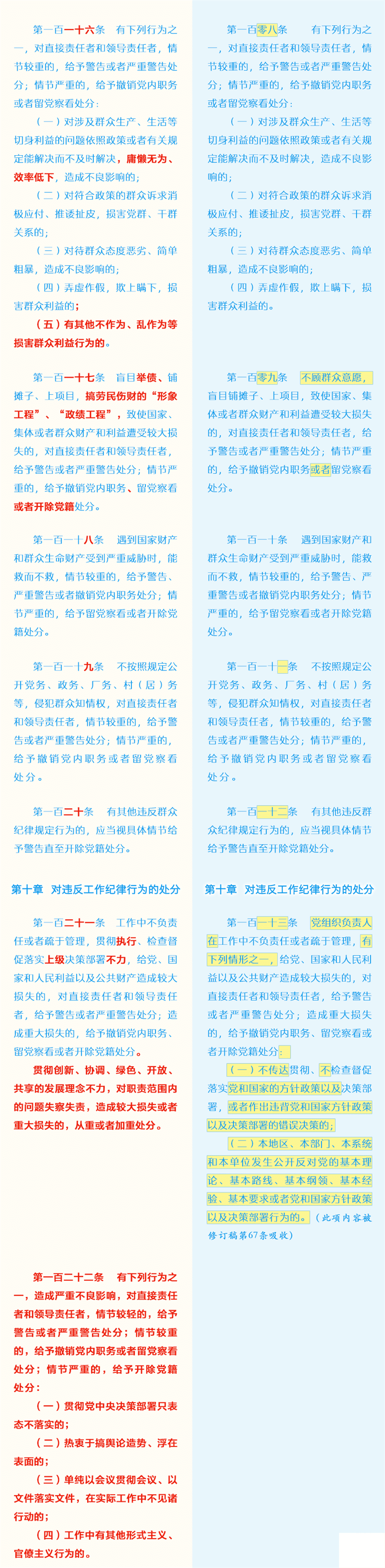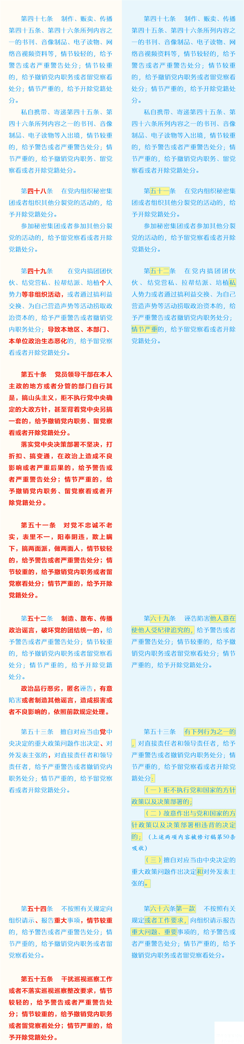 新舊《中國(guó)共產(chǎn)黨紀(jì)律處分條例》對(duì)比