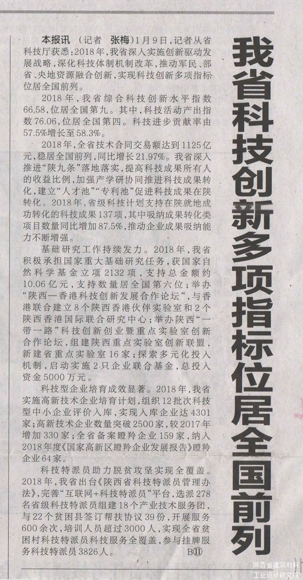 本報(bào)訊(記者 張梅)1月9日,記者從省科技廳獲悉:2018年,我省深入實(shí)施創(chuàng)新驅(qū)動(dòng)發(fā)展戰(zhàn)略,深化科技體制機(jī)制改革,推動(dòng)軍民、部省、央地資源融合創(chuàng)新,實(shí)現(xiàn)科技創(chuàng)新多項(xiàng)指標(biāo)位居全國前列。