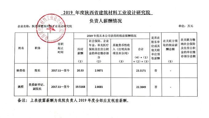 2019年度陜西省建筑材料工業(yè)設計研究院負責人薪酬情況公示